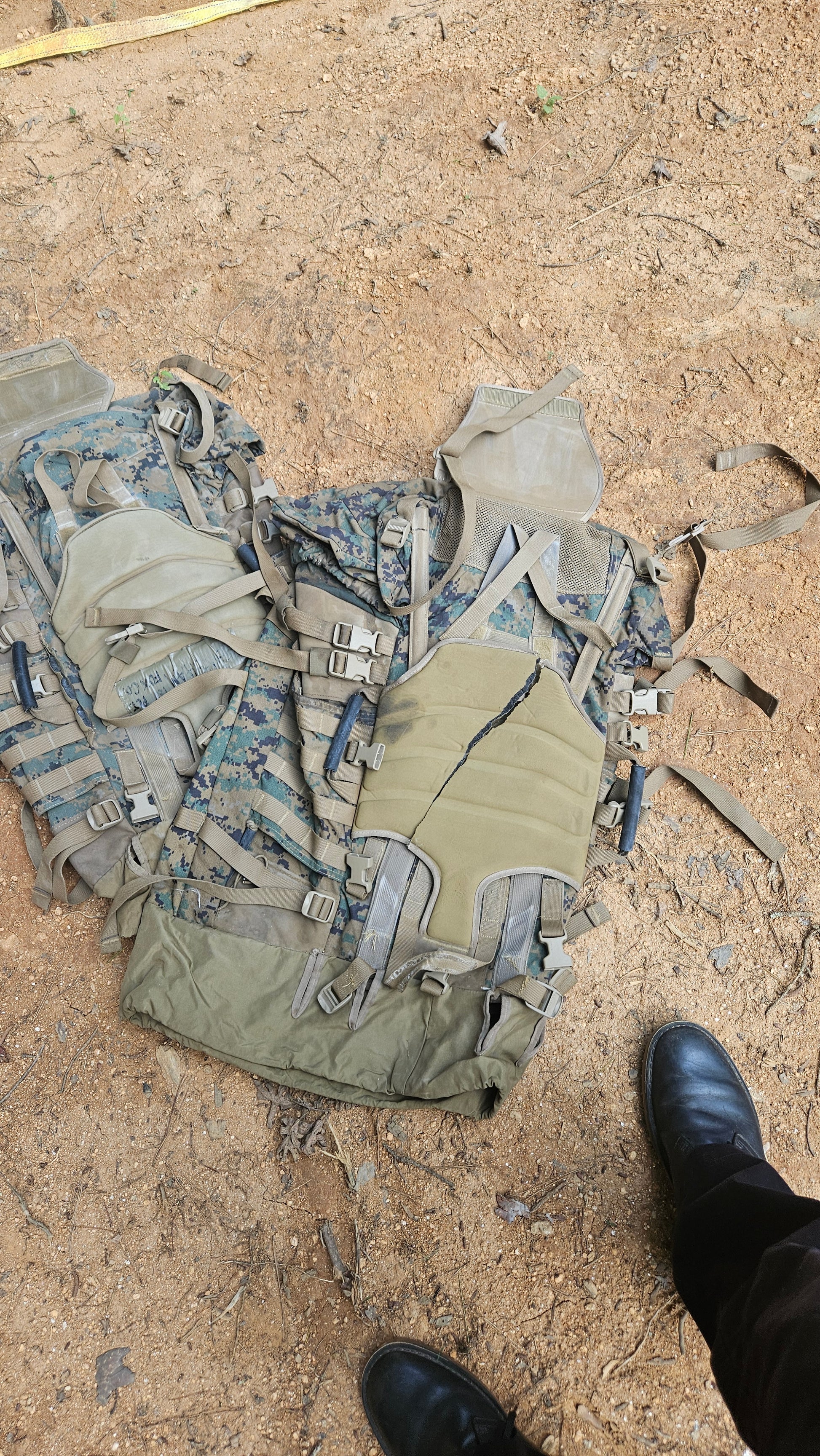 May have some webbing cut (buckles for securing the assault pack)